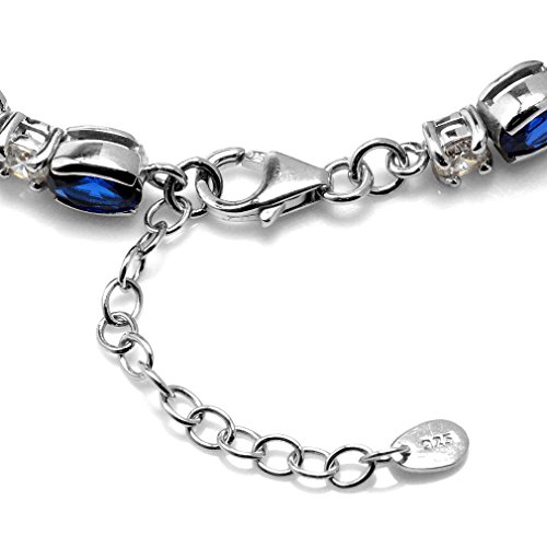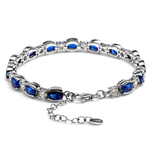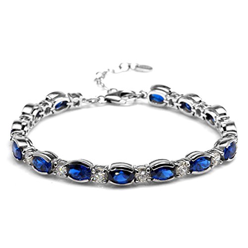 -. Title : 11.76ct. Synthetic Blue Sapphire White Gold Plated 925 Sterling Silver 6.75-8.25" Adj. Bracelet