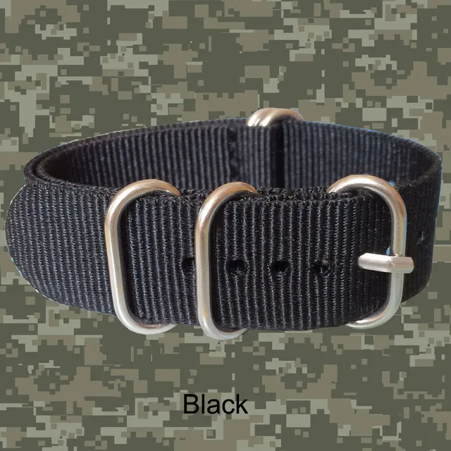 | [해외] 최고 품질 레트로 도매 18 미리메터 블랙 육군 스포츠 Zulu 직물 나일론 손목 시계 시계 스트랩 5 반지 밴드 버클 벨트 18 미리메터 |