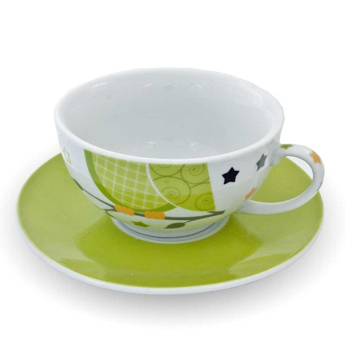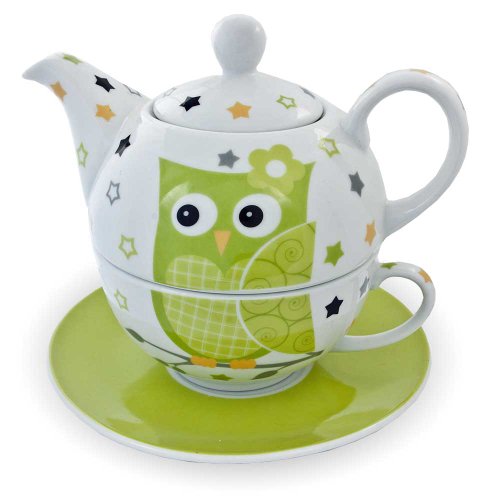 Porzellan Tee Set Tea for one Teeservice Eule grün
