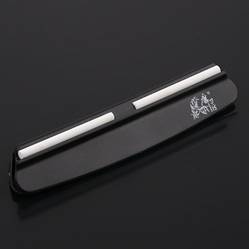 The Taidea angle guide is a great way to train yourself in developing the ability to consistently sharpen a knife at the same amount of degrees. Depending on the width of the blade, the guide will allow you to initiate the stroke at approximately 15-20 degrees. It can be used on a flat water/oil stone or a honing/sharpening steel of any type. After practicing with the device, one will eventually develop the ability to free hand the stroke with amazing accuracy