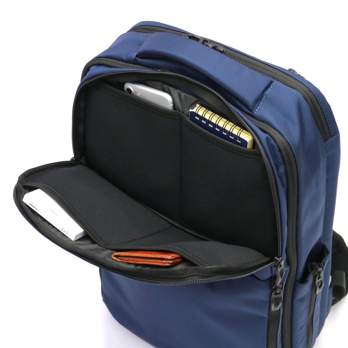 デジタルデバイスの収納に特化したバックパック。クッション性を備えた収納部は保護性が高く、充実の収納スペースを備えた実用性の高いアイテム。ビジネススタイルにも休日スタイルにも調和するシンプルなデザインとなっています。