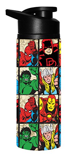 Silver Buffalo MV9189ST Marvel Grid Stainless Steel Water Bottle, 25-Ounces