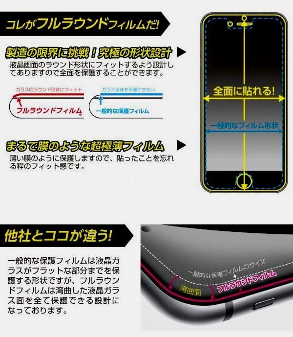 | 液晶画面のラウンド形状にフィットするよう設計してありますので、全面を保護することができます。薄い膜のように保護しますので、貼ったことを忘れるほどのフィット感です。目にやさしいノングレア加工の防指紋タイプ!! |