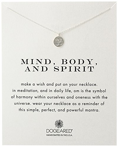 -. Binding : Jewelry -. Brand : Dogeared -. Color : silver -. Department : womens -. EAN : 0845918069530 -. Feature : Sterling silver necklace featuring a om symbol disc charm -.Fine cable chain with sP.R.Ing ring clasp -.Handcrafted in the USA -.Wear this as a reminder to honor yourself with positive and peaceful energy -. Label : Dogeared -. Manufacturer : Dogeared -. Model : MS2712 -. MPN : MS2712 -. PackageQuantity : 1 -. PartNumber : MS2712 -. ProductGroup : Jewelry -. ProductTypeName : FASHIONNECKLACEBRACELETANKLET -. Publisher : Dogeared -. Studio : Dogeared -. Title : Dogeared Reminder "Mind, Body, and Spirit" Sterling Silver Om Pendant Necklace -. UPC : 845918069530
