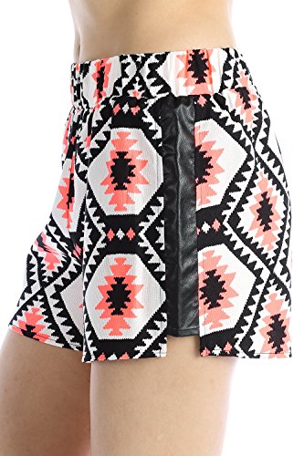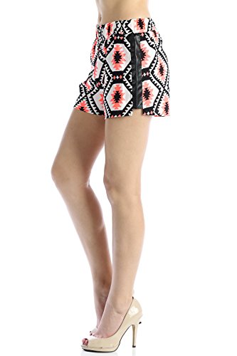 -. Binding : Apparel -. Brand : Chelsea Apparel -. Department : womens -. Feature : Chelsea Juniors Shorts / Designed in California, US / Size shown in the image : Small / Model size shown in the image : Height - 5'8", Bust - 34", Waist - 26", Hips - 36" / Sexy Shorts To Go Out For Beach Party -. ProductGroup : Apparel -. ProductTypeName : SHORTS -. Title : Chelsea Apparel - Junior Leather Detailed Geometric Print Shorts CP7318A