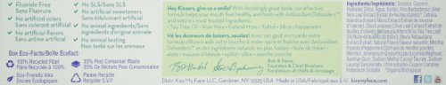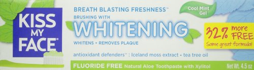 A breakthrough in the science of oral hygiene. Kiss my face triple action toothpaste uses soothing certified organic aloe vera combined with a powerful blend of carefully selected natural whiteners to create a truly exceptional toothpaste that still leaves your mouth feeling tingly fresh. Contains certified organic aloe vera, silica (natural whitener), CO-Q10 (for healthy gums), peppermint (natural flavor), horse chestnut (for healthy gums), tea tree oil (cleansing and antiseptic), and menthol (natural flavor).Feature