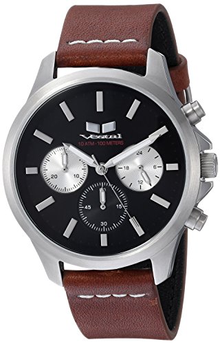 Vestal 'Heirloom Chrono' Quartz Stainless Steel and Leather Dress Watch, Color:Brown (Model: HEI39CL04.LBWH)