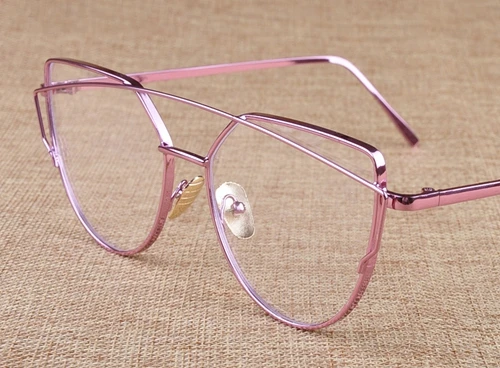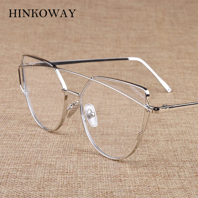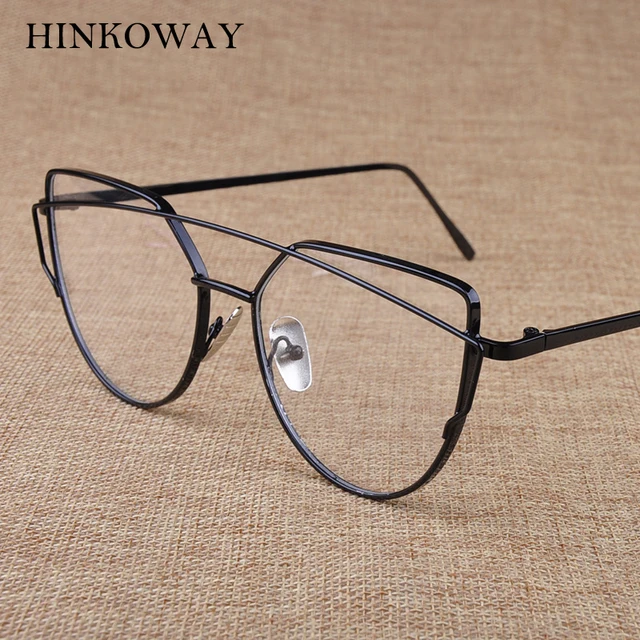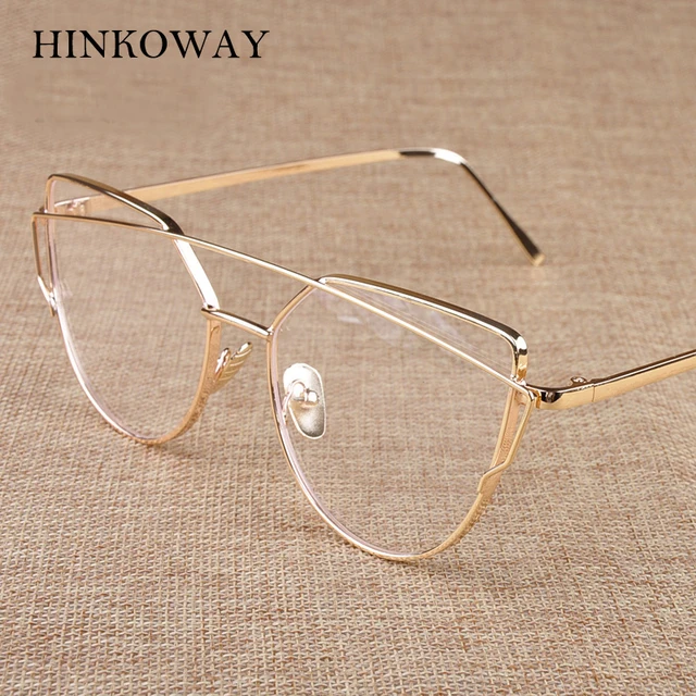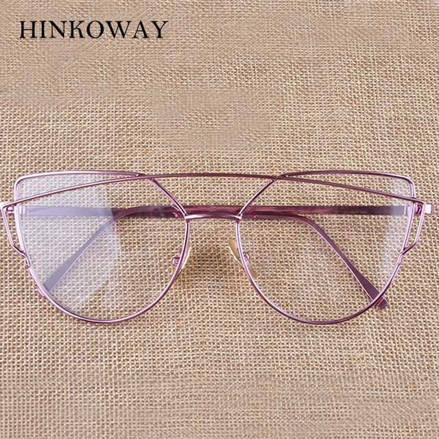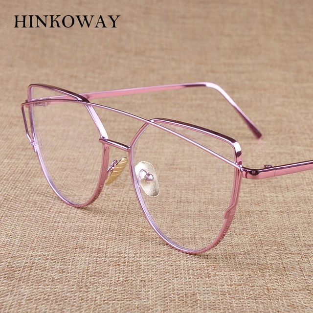 | [해외] HINKOWAY 빈티지 고양이 눈 핑크 안경 프레임 여성 트윈 빔 투명 렌즈 안경 프레임 골드 금속 광학 안경 프레임 |