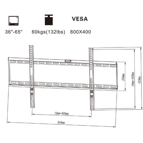 - Feature : TV Mount Type: Ultra-Slim TV Bracket / Load capacity: 60kg(132lbs) / TV to Wall: 25mm(0.98inch) / Supports: VESA standards up to 800x400