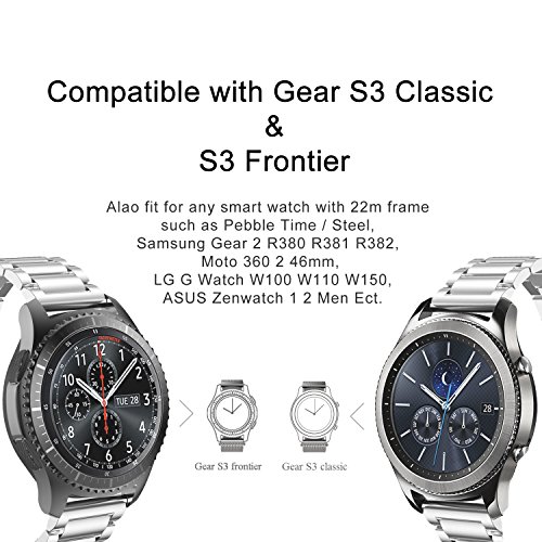 Samsung Gear S3 Watch Band,Shangpule 22mm Stainless Steel Metal Replacement Smart Watch Band Bracelet for Gear S3 Classic SM-R760 and S3 Frontier SM-R770 Smartwatch (Silver)