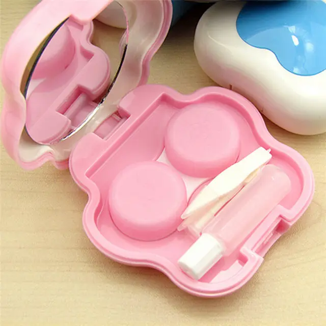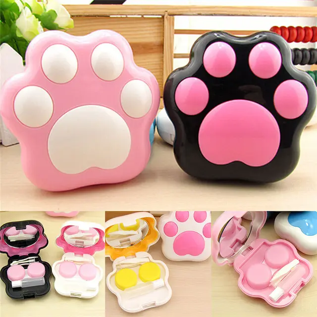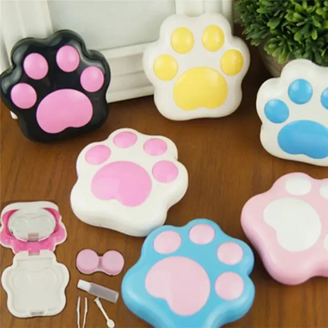1 개 만화 귀여운 플라스틱 개 고양이 발 미니 콘택트 렌즈 상자 콘택트 렌즈 케이스 컨테이너 홀더 거울 임의의 컬러