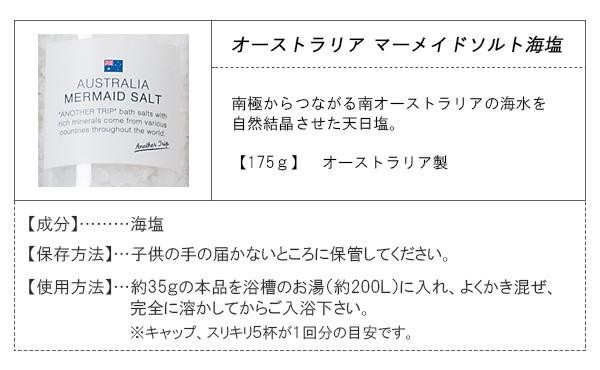 | ヒマラヤ産のミネラル豊富な岩塩と、オーストラリアの天日塩。大自然の恵みをバスソルトにしてボトルに詰め込みました。旅行気分でゆったりとバスタイムをお楽しみください。 |