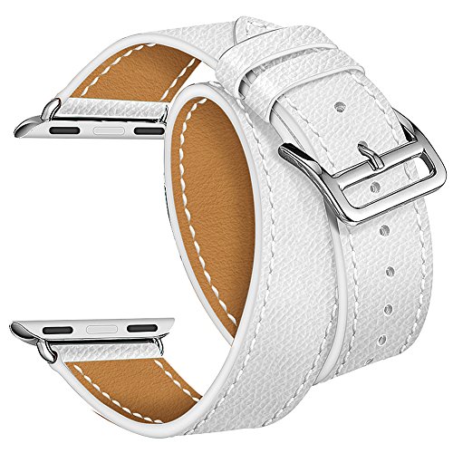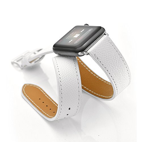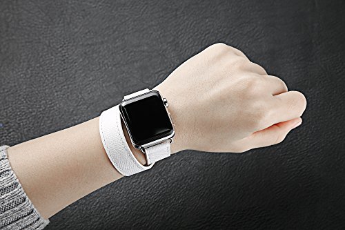 Top Leather Double Tour iWatch Strap - 100% genuine leather band, 100% waterproof and 100% sweatproof lining leather, pure handmade craft integrate with the modern technology. The high-gloss metal clasp with extended long double tour band gently wraps twice around your wrist to make your apple watch more elegant, vintage & fashionable