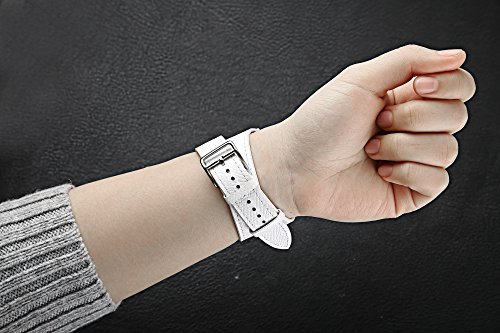 Maxjoy for Apple Watch Band, Genuine Leather Watchband 42mm for iWatch loop Strap with Metal Clasp Adapters Replacement Bracelet for Apple Watch Series 2, 1 Sport & Edition, Double Tour Cuff (White)