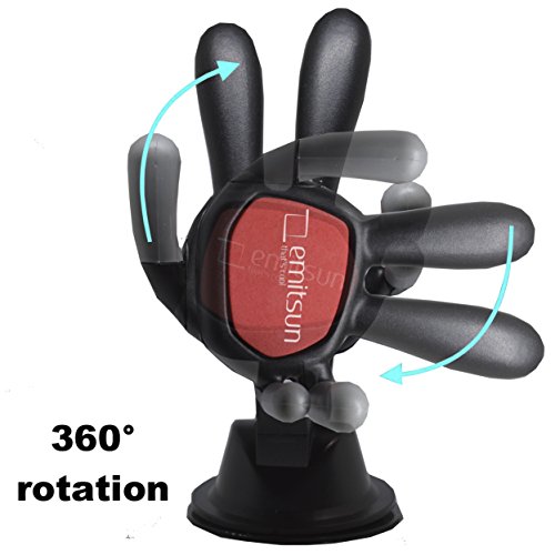 EMITSUN - Universal Car Cell Phone Holder for iPhone 7/6s/SE Samsung Galaxy S6/S7 Edge/S6 Edge/LG G4/GPS with 360° rotation. Windshield/Dashboard/Desk installation. Red color. - Driving Safety.