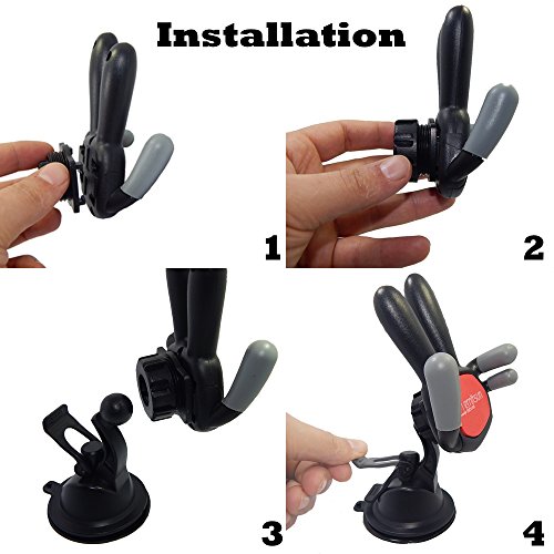 EASY AND FAST INSTALLATION - With a simple-to-use suction cup car holder set is easy. Just find a place to set up and put down the lock lever. Car Holder is securely attached and will not fall while driving. Can be installed on windshield, desk or dashboard (surface should be smooth).