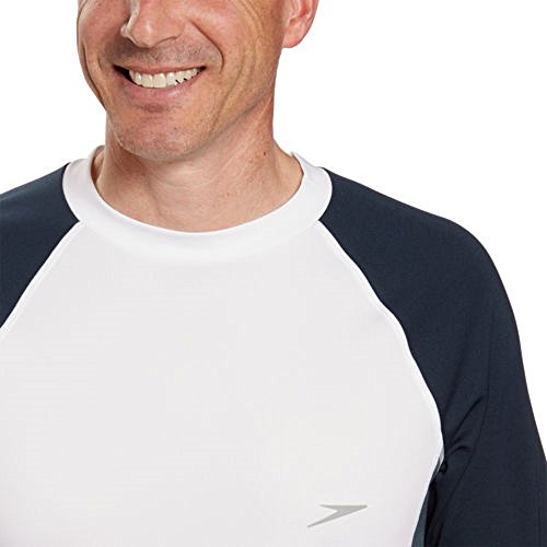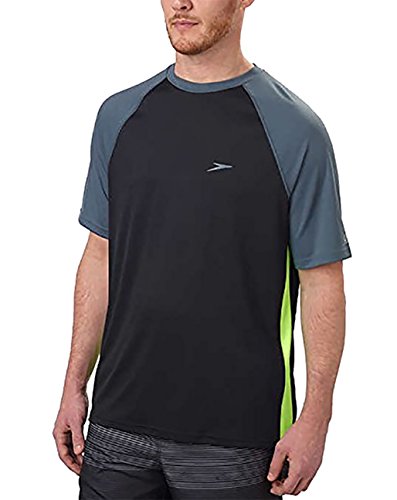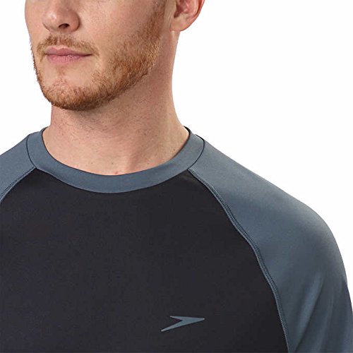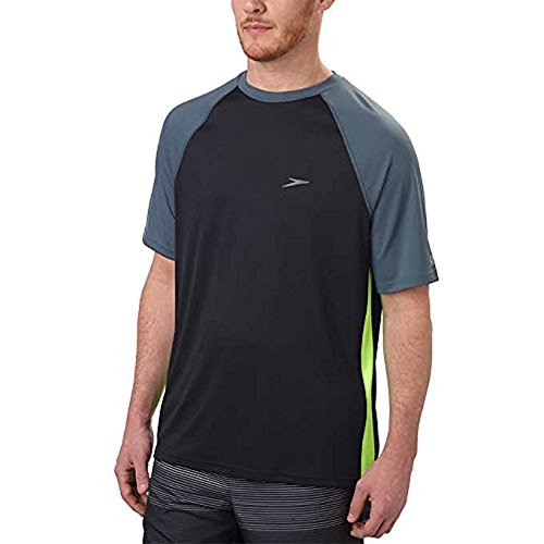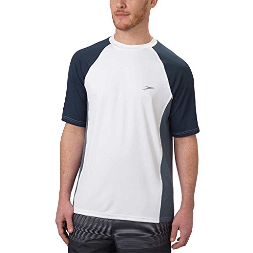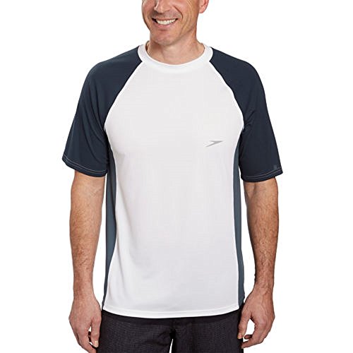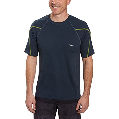 Studio : Speedo Publisher : Speedo Binding : Apparel Product Description Speedo equals better fit, performance, quality, and innovation. The short sleeve swim tee is a great rashguard coverup top from our men's active recreation collection that works hard to protect you from the sun's harmful rays. It features a pullover crew neck with athletic contrast stitching and offers the perfect technology for a hot day at the beach or pool because it has trademarked uv block the burn sun protection. It is designed for the recreational athlete or water enthusiast seeking both performance and comfort features and is ideal for swimming, running, surfing, post swim workouts, trips to the pool, beach, or gym, or just lounging around in. Look and feel your best in or out of the water, while you play, train or win in speedo, the choice of champions. 0