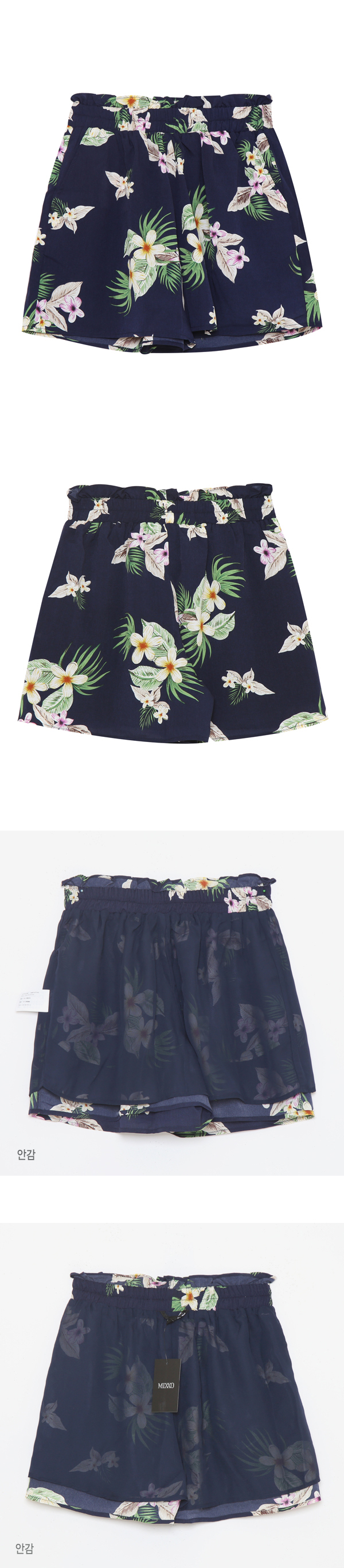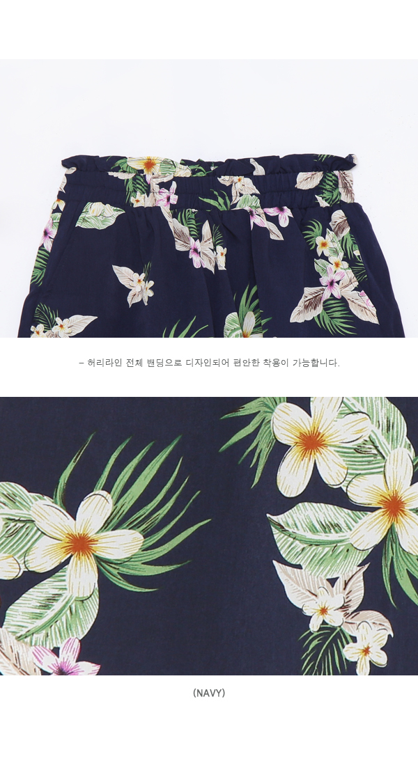 - 플로럴 패턴으로 포인트를 주었으며, 허리밴딩으로 편안한 착용이 가능한 숏츠입니다.