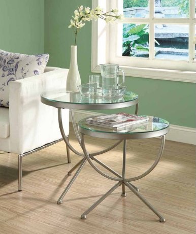 -. Title : Modern Metal 2 Piece Nesting Table Set with Tempered Glass Top and Silver Metal Base - Includes Modhaus Living Pen