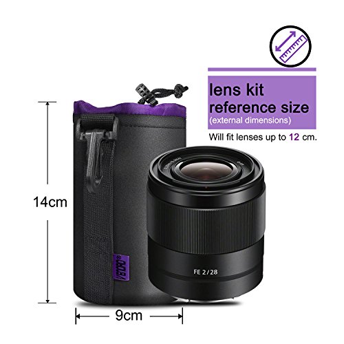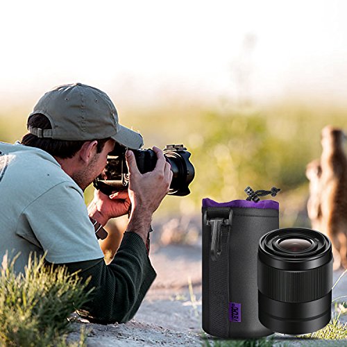 Compatibility: Lens pouch compatible with lenses from most popular cameras, including Canon, Panasonic, Pentax, Olympus, Nikon, Fuji, Sony, and all other popular brands
