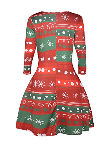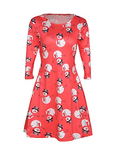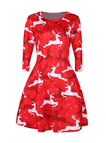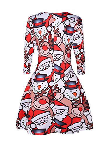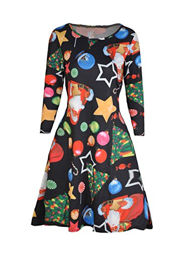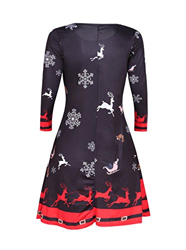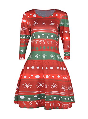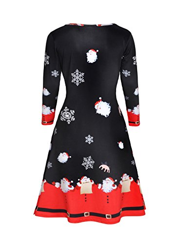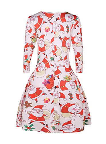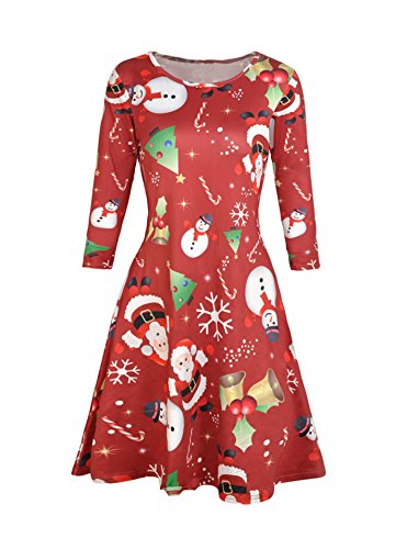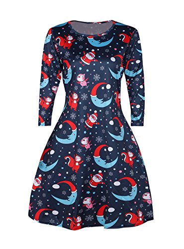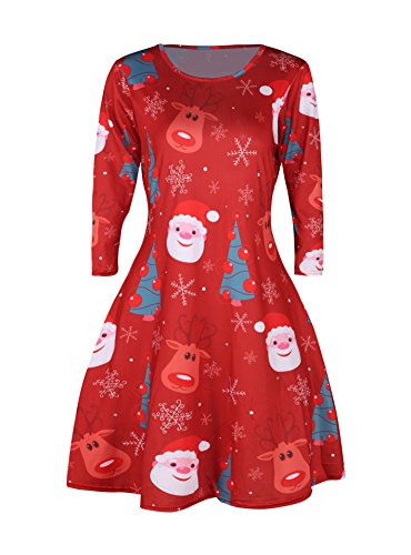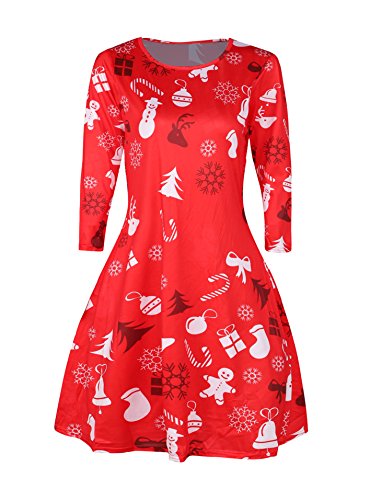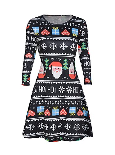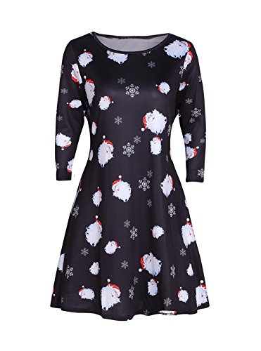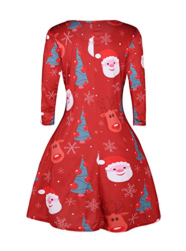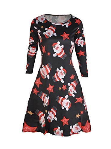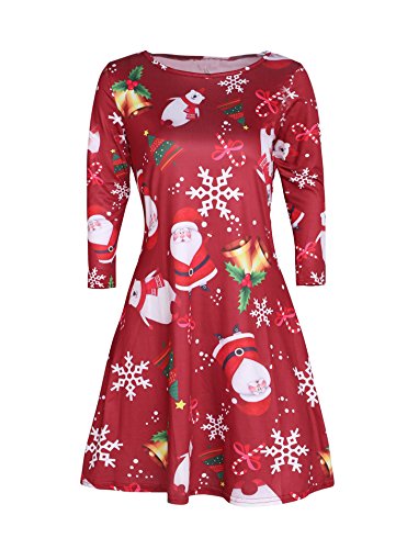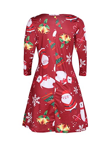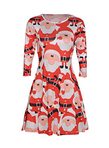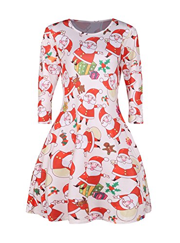 Dongpai Women's Christmas Santa Claus Party Dress Casual Long Sleeve Round Neck Tunic Dress