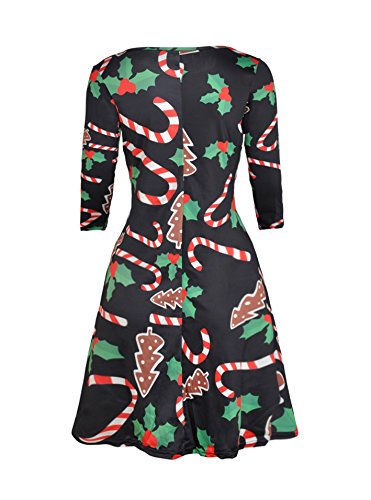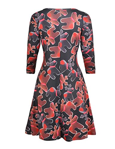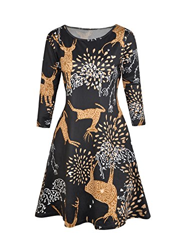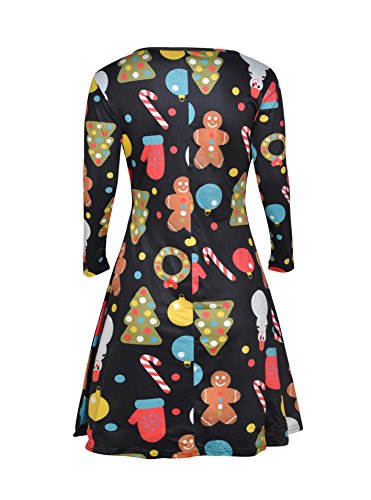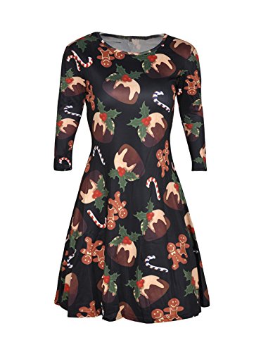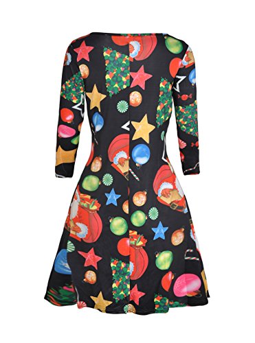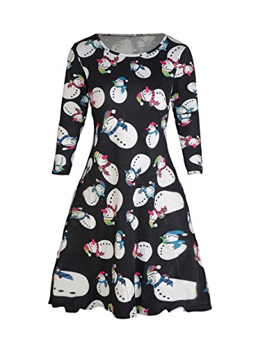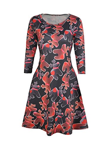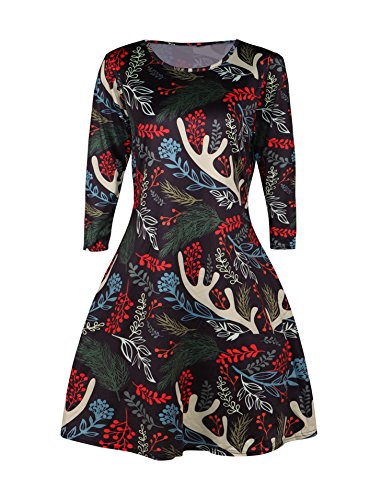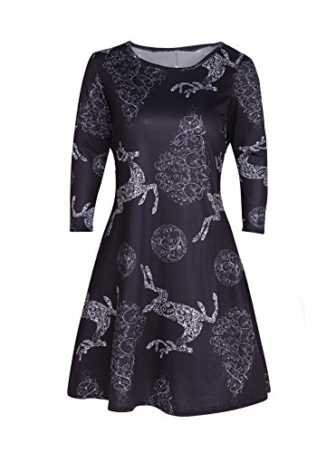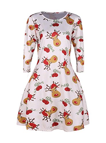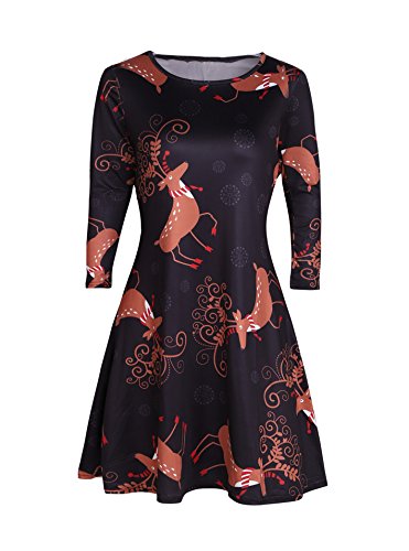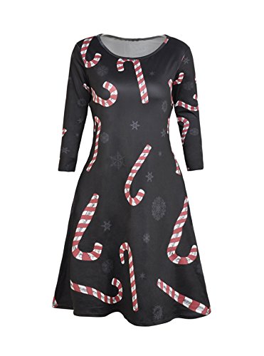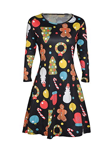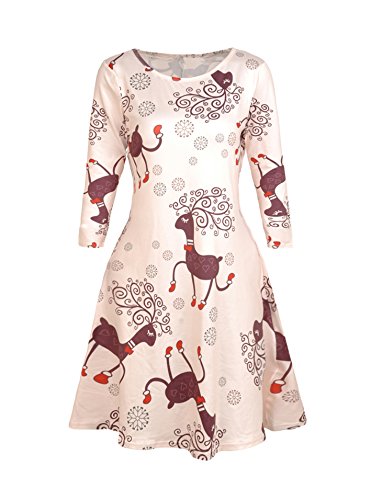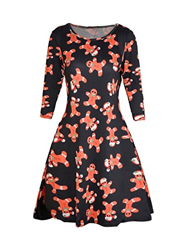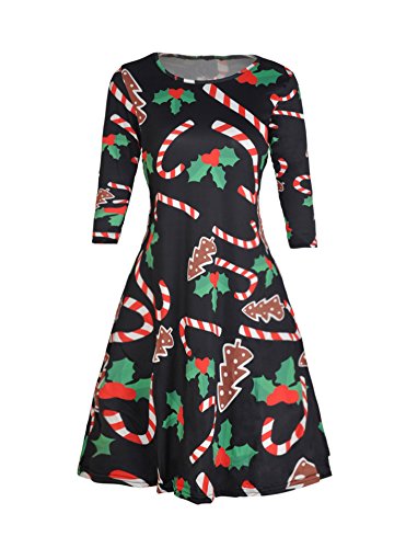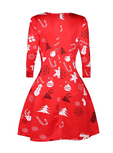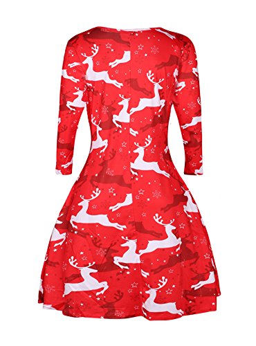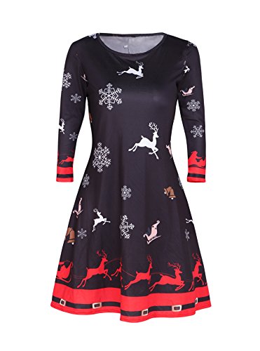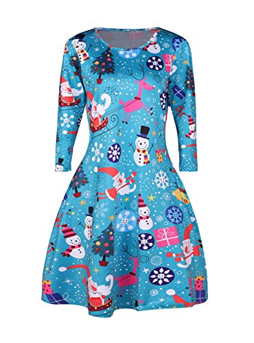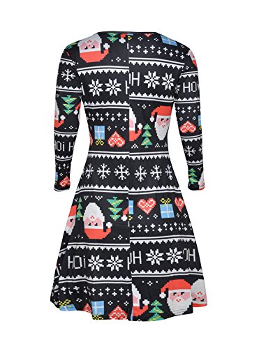 Dongpai Women's Christmas Santa Claus Party Dress Casual Long Sleeve Round Neck Tunic Dress