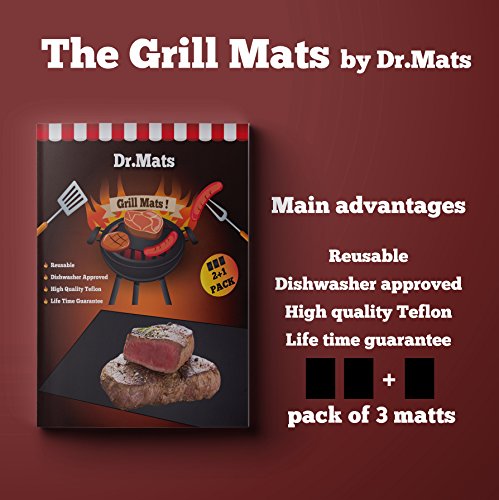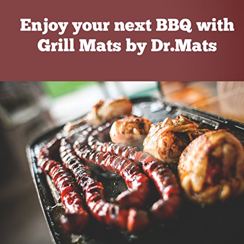 - 3 ROBUST GRILL MATS FOR THE PRICE OF 1! - The Dr.Mats ergonomic and practical grill and baking mat will help suppress all flare-ups due to its extra-large 15.74” x 13” (40cm X 33cm) size and offer you enough space to grill, bake and even roast your delicious burgers, juicy stakes or vegetables at the same time! And the best part? Our set include 3 amazing grill mats for the price of just 1! can be used as chicken warming pad since the Teflon barbecue grill mats are cooking your meat evenly
