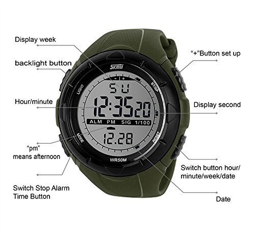 다기능:디지탈 표시,날짜 요일 표시,50M방수,LED라이트,알람,스톱워치,12/24시간제 표시 교환