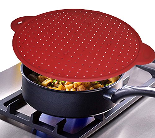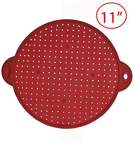 Silicone Splatter Screen / Strainer / Splatter Guard, Heat Tolerance, Anti Rust Durable Construction, Dishwasher Safe-Red, 11 Inch