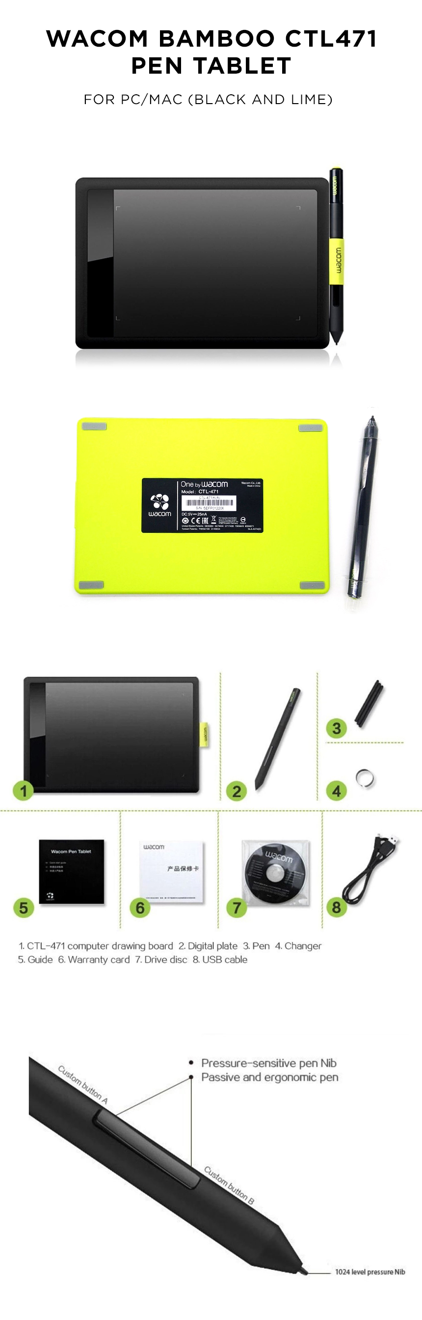 Wacom Bamboo CTL471 Pen Tablet for PC/MAC (Black and Lime)