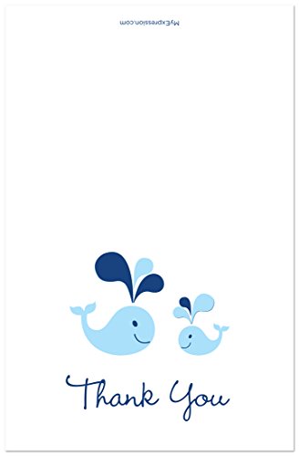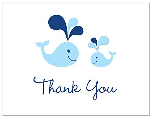 50 Cnt Blue Whale Splash Boy Baby Shower Thank You Cards