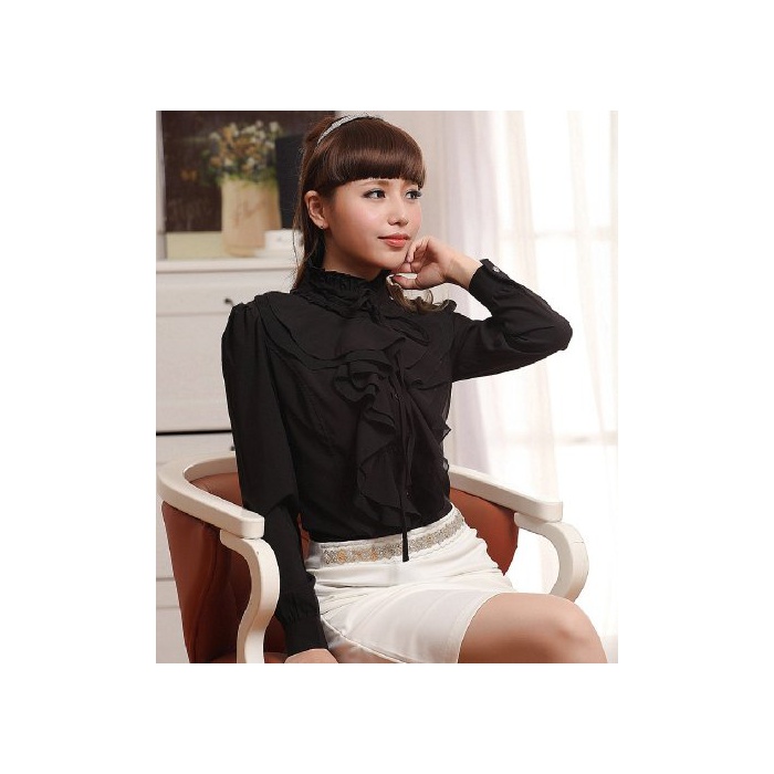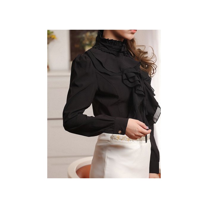 원본상품명: 【ノブランド品】 王調 クラシカル フリルブラウス (S, ブラック)