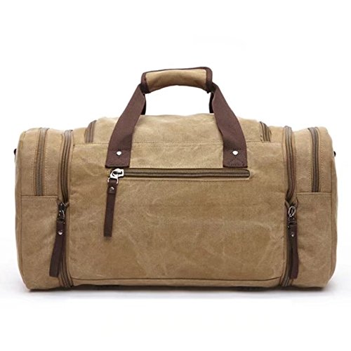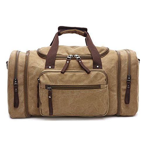 Product Description This mid-size(53cm x 25cm x 30cm / 20.67' x 9.75' x 11.7' L x W x H ) canvas travel duffle bag make from 16Oz thick Canvas, durable and water resistant,carry comfortable,both sides can expand the capacity of 5 cm, the range of the capacity 39-44 L; Macth with removable shoulder strap,perfect for outdoor, travel, vacation, journey, weekend, camping, school and daily use.