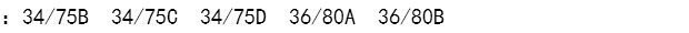 M: 34 / 75B 34 / 75C 34 / 75D 36 / 80A 36 / 80B