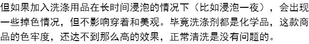 However, if you add detergent in the case of prolonged soaking (such as soaking overnight), there will be some fade, but does not affect the wearing and beautiful. After all, detergents are chemicals, this product color fastness, but also reach such a high effect, the normal cleaning is no problem.