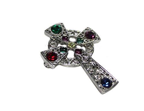 -. Title : Celtic Cross Brooch Oxidized Silver Colored Stones