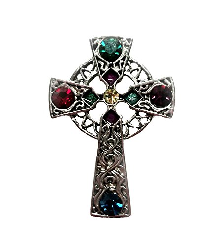 -. Feature : A gorgeous oxidized silver Celtic Cross brooch with colorful stones. / Measures approximately 1" wide by 1 ½" tall. / The Celtic Cross was used to teach Christianity with Christ represented in the center. / Made by Solvar in Co. Dublin, Ireland.