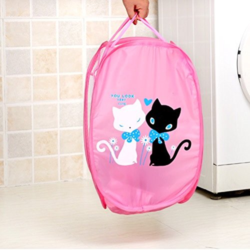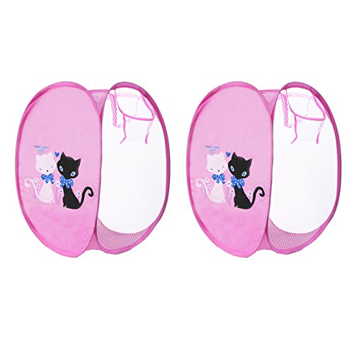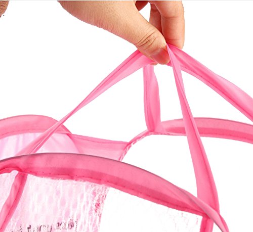 Acmer 2 Pack Collapsible Mesh Clothes Hamper Collapsible Laundry Basket, Large Pop Up Laundry Hamper with Durable Handles, Pink