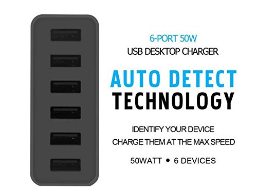 autvivid 6 USB Charger 50W/10A 6-Port USB Power Port for iPhone SE/6s/6s Plus, iPad Air 2/mini 3, Samsung Galaxy s7/s7 edge, Note 5 and More