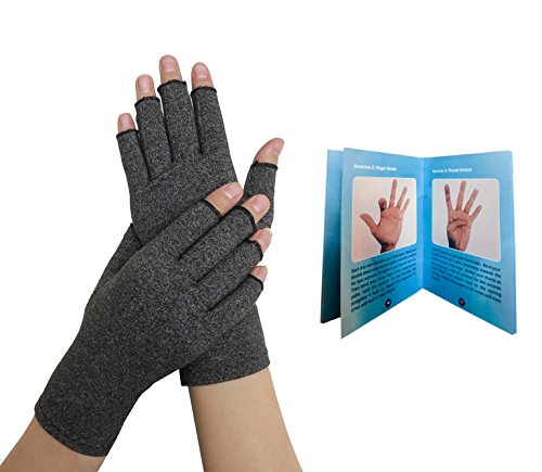 Dr. Arthritis's premium cotton compression gloves help relieve your hands of the troublesome aches and pains associated with arthritis. From the time we wake up in the morning until the time we go to sleep, we're working with our hands. Be it making breakfast, working in the garden, or using a computer for hours at a time, our hands are putting in more work than the rest of our bodies. That means they're more apt to become tired, sore, or suffer from arthritis. That's why you need to fight back the pain, stiffness and inflammation with long-lasting relief from Dr. Arthritis's Cotton Compression Gloves. Our gloves, blended with cotton nylon and spandex, help increase circulation, reduce inflammation, and decrease pain associated with arthritis and other hand conditions. What's more, unlike other compression gloves, these gloves offer extended finger compression to cover all but the last joints in the hand; this allows for extended relief while still giving you the freedom to grip, touch and feel. And because they're crafted with breathable material, you can wear them all-day in supreme comfort. BONUS HANDBOOK: Each set of our compression gloves also comes with a comprehensive doctor written medically accurate handbook with essential information called the Dr. Arthritis Handbook. You'll learn about symptoms and treatment for arthritis, hand arthritis and hand strengthening exercises, and our top 10 tips for arthritis sufferers. Key benefits of our compression gloves include: · Pain Relief, Reduced Inflammation, and Decreased Stiffness · Increased Circulation and Blood Flow · Enhanced Recovery After Strenuous Exercise · All Day Comfort and Support · Machine Washable and Tumble Dryer Compatible Click "Add to Cart" above and start enjoying arthritis relief within 48 hours with Amazon Prime 0 |