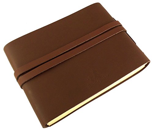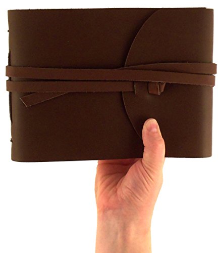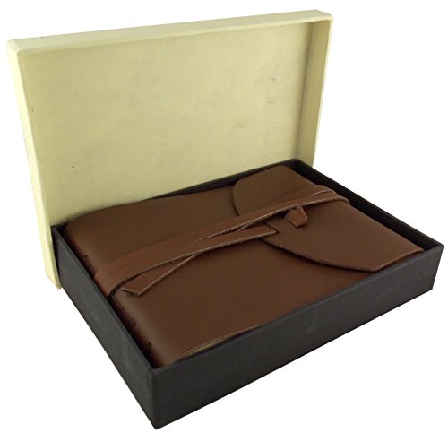 Rustic Genuine Leather Photo Album with Gift Box - Scrapbook Style Pages - Holds 100 4x6 or 5x7 Photos - Photo Book 6x8"