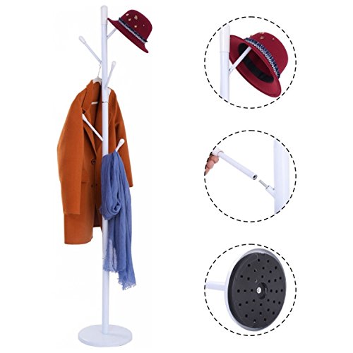 -. Feature : Sturdy Base On Flat Surface , Quality Powder-Coated Iron Construction / Simple And Stylish Design Is Suitable For Any Room, Fits In Your Space And Needs, Fits On Your Budget / Smooth Surface, Easy To Keep Clean And Maintain / Great For Hanging Hats, Coats, Scarves, Handbags, Backpacks, Towels And Other Clothing Items / Assembled Hight:70.9 Inch, Base Diameter: 11.8", Weight: About 11 Lbs, Weight Capacity : 17.6 Lbs Per Hook