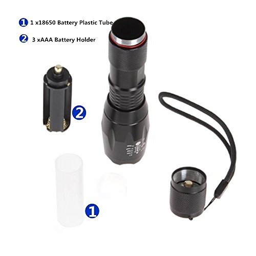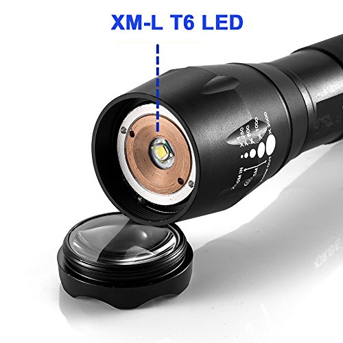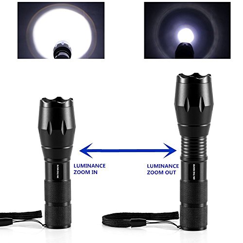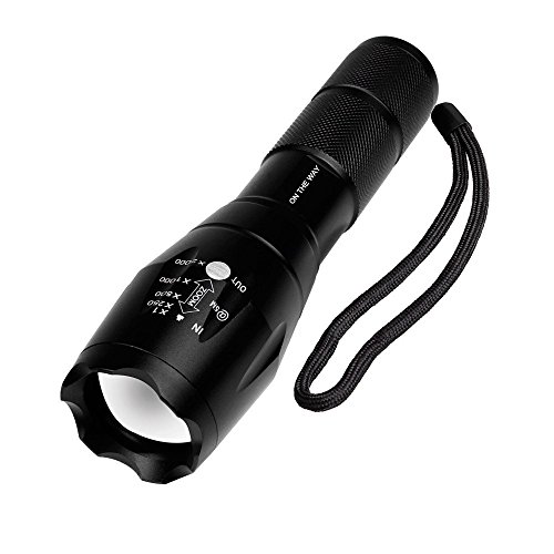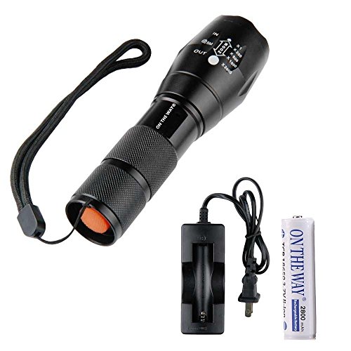 ON THE WAYZoomable Scalable 1600 Lumen Handheld Flashlight XML T6 5 Mode Adjustable Focus Zoom Tactical Torch Water Resistant Camping Lamp with 18650 3.7V Rechargeable Battery and 18650 Charger