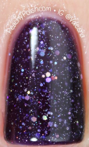 -. Feature : Purple Jelly Nail Polish With Holographic Glitter / Apply in 3 coats for best look / Does NOT contain Toluene, Formaldehyde, or Dibutyl Phthalate / Flat Brush for Easy Application / Full Sized 15 ml Bottle