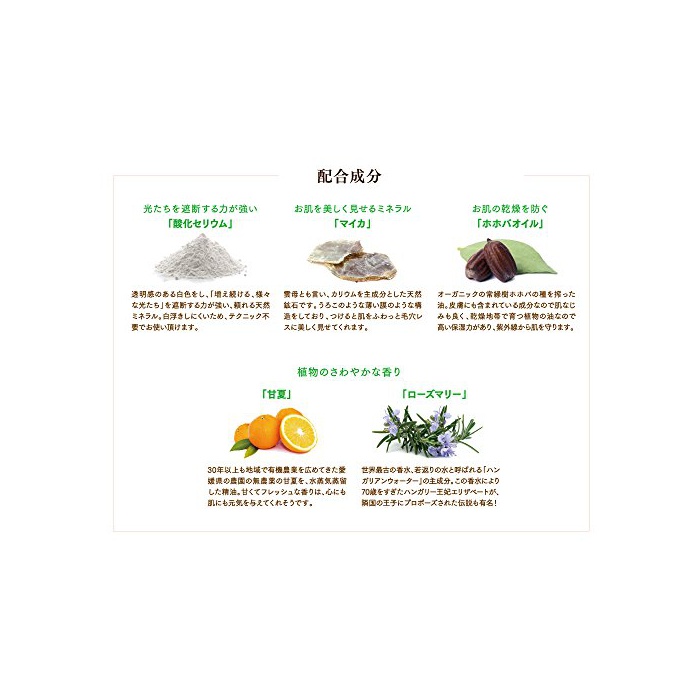 전성분:my car,산화 cerium,실리카,《호호바》종자유,스테아린산,스테아린산Mg,토코 fellow《루》,rosemary엽유,《나츠미칸》과피유,다이의유