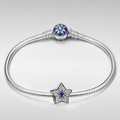 -. Title : Ninaqueen 925 Sterling Silver Star Pave Charm Purple Cubic Zirconia Fit Bracelet