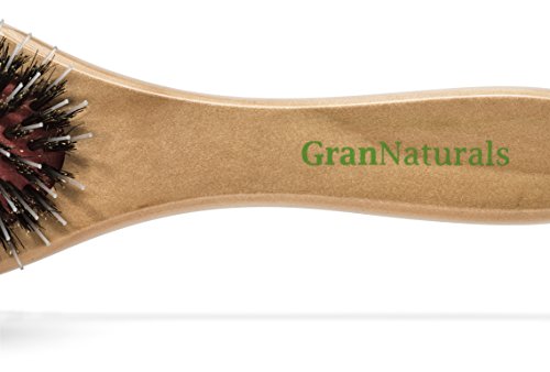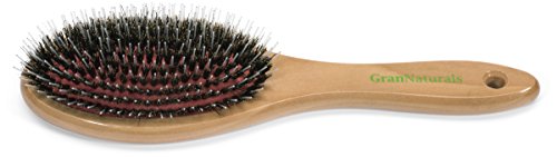 -. Binding : Misc. -. Brand : GranNaturals -. EAN : 0753807366762 -. Feature : REDUCES FRIZZ: As you brush oils from your hair are spread around which lubricates each hair strand and reduces the amount of hair frizz. / STIMULATES SCALP: Brushing your hair with the boar bristle brush massages the scalp and stimulates blood flow / PREVENTS OIL BUILD-UP: Boar bristle brushes help to distribute oil from your roots to your ends. / NATURALLY CONDITIONS HAIR: The oil that is spread helps to repair dry hair and adds volume and shine. / MIXED BOAR + NYLON BRISTLES: The nylon bristles help to brush deep into your hair -. IsAdultProduct : 0 -. MPN : 7.53807E+11 -. PackageQuantity : 1 -. PartNumber : 7.53807E+11 -. ProductGroup : Beauty -. ProductTypeName : BEAUTY -. Title : GranNaturals Boar + Nylon Bristle Oval Hair Brush with a Wooden Handle -. UPC : 753807366762