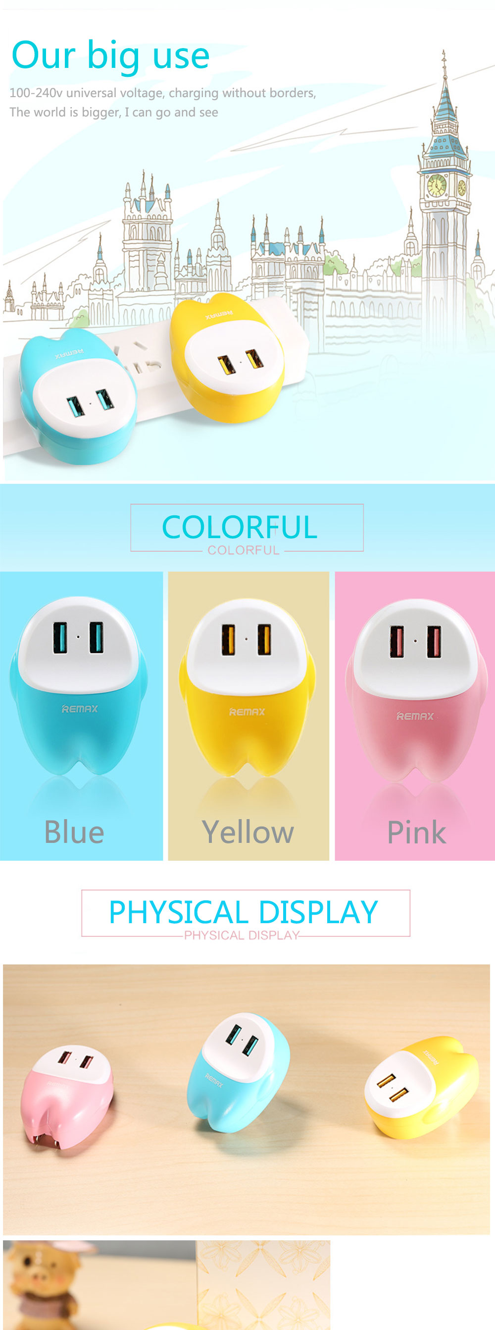 Colors: Pink, Yellow, Blue