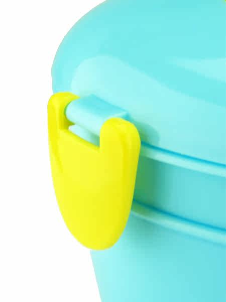 .饭盒中间有隔层分为上下俩层,上层放菜,下层装饭,非常实用的儿童饭盒