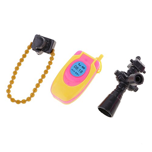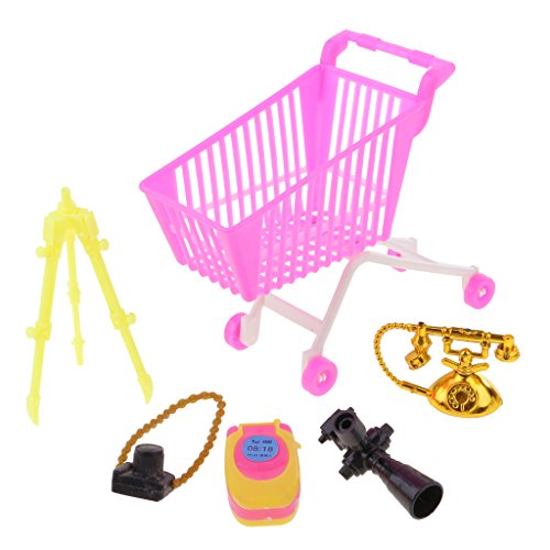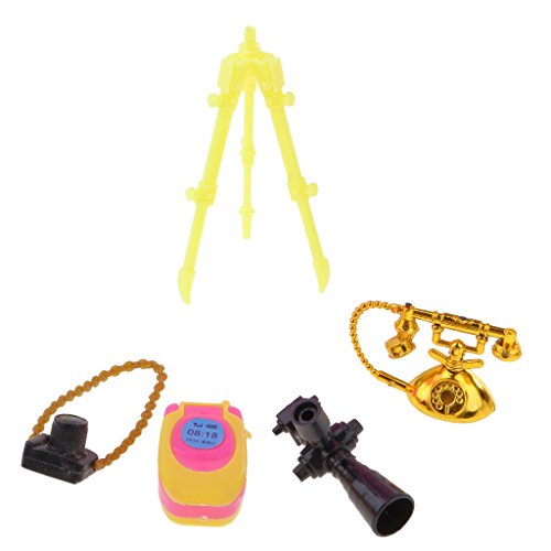 -. Feature : 5 pieces/ set plastic dollhouse miniatures items, shopping cart , camera, telephone, cellphone, binoculares. / Great for barbie dolls and other 1/6 29cm/12inch action figure accessories dollhouse decorations. / Best pretend play toys and birthday/chrismas gifts for girls. / Color: multicolored (color random). / Materials:plastic.